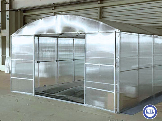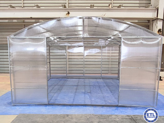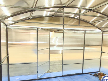 Szklarnia “Hestia” wykonana jest z ocynkowanych ogniowo profili, jako powłoka zabezpieczająca nakładana są arkusze poliwęglanowe z filtrem UV, aby stworzyć idealne warunki do uprawy warzyw, nasion i kwiatów. Dla kontroli sztywność i stabilność konstrukcji, powierzchnia czołowa jest spawana, a profile dachowe są wygięte. Elementy poprzeczne o długości 2 m są montowane za pomocą śrub i łączników w kształcie litery “X”. Odpowiednia wentylacja w szklarni pojawia się w każdym z frontów (drzwi dwuskrzydłowe 2 szt). Nie ma potrzeby demontażu tunelu na zime.