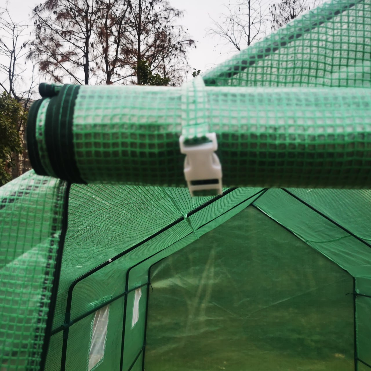 Tunel foliowy ogrodowy — doskonałe rozwiązanie dla właścicieli działek i ogrodników, którzy chcą poszerzyć swoje możliwości w uprawie warzyw i ziół. Podstawowe pokrycie — siatkowa folia polietylenowa o gramaturze 140 g/m² która doskonale przepuszcza światło, niezbędne do wzrostu roślin, a jednocześnie posiada dobre właściwości izolacyjne. Folia jest łatwa do zamocowania na ramie za pomocą elementów z kompletu, a system mocowania na śruby zapewnia stabilność i możliwość dalszej naprawy lub wymiany pokrycia, jeśli zajdzie taka potrzeba.